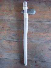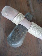 speckeled granite head and malaluka handle with hemp wrap. this is a working replica of a prehistoric ground stone axe, or celt, used for felling trees and chopping wood. the head is pressure fitted into the handle making for easy removel and resharpening.