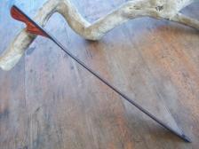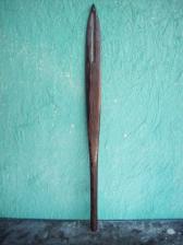 representing a new design in hammer grip atlatls this model blends the best features of a classic hammer grip with the performance benefits of a flexible paddle style thrower. the ergonomic handle design gives excellent grip and maximum control while the wide blade like main body provides stability and flexibility. there is also a dart channel for quick loading. this particular thrower is made from black palm with a gorgeous cocobolo handle laminate. add three tonkin cane darts for an additional $50. |