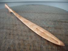 Sleek modern style hammer grip atlatl in both highly figured American and Japanese cherrywood. 24 inches overall length and good for both right and left handed throwers. Add three tonkin cane darts for an additional $50 or three solid hardwood darts for $45.
