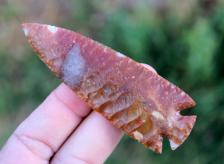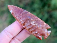This is a rare, tough to extract material from above the head waters of the Hams Fork river in Wyoming. This point has a nice quartzite inclusion in the top 1/4 of the point. |