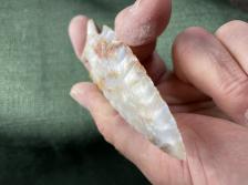 Nicely flaked Hardin made from a sweet piece of Paiute agate! Beautiful colors in this piece of Paiute! Crystal pocket around the dark red area can be seen on both sides. Serrated sharp, thanks for looking! |