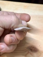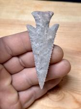 Beautiful purple hue Flint ridge knapped into a sleek, sharp Hardin. With a ‘mid life’ bevel. |