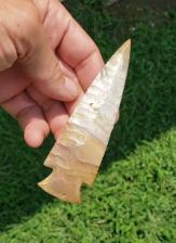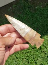 Just a 1/6th under 5 inches this is a really nice Hardin made from Sedalia chert. There is a cool crystal pocket on one side that is loaded with tiny crystals. Thanks for viewing |