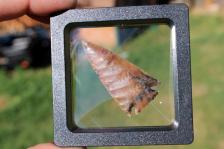 A small corner notch made from Hartville Uplift chert, this includes a floating case to display.