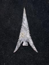 Well flaked and thin Gunther style point made from a nice piece of grayish colored dendritic hartville material from Wyoming. Nicely serrated and very sharp. |