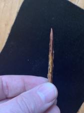 This point style is one that is found locally. These are known for being thin and are mostly broken. This one was modeled after a piece that I found in Wyoming many years ago. This point is made from Hartville uplift material from Wyoming. One of my favorite point styles. |