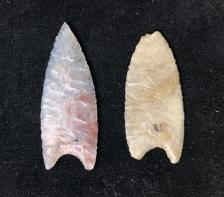 This point is made from agate that comes from the sunshine mine near Hartville, WY. This point type is known for being very thin and finely flaked. This point was modeled after a point I found many years ago in Wyoming. |