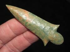 Rare Green colored Flintridge Flint Hayes point with some red and tan swirls. |