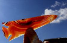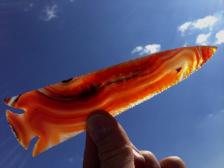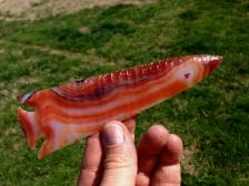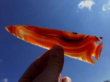 Can rock be anymore beautiful? This is the last piece of this paticular agate that I own. It is a big spear point with increddible colors and patterns. The sweeping doglegged notches and slightly winged ears help create this beautiful point. Truly amazing. |