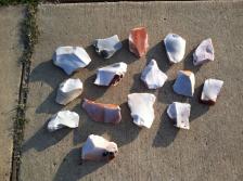 Very popular and easy to work, heat treated Novaculite, from Arkansas. Quarried, spalled, and heat treated by the Novaculite experts � Bob Thomas and Tom Popow. Colors � creams, pinks, grays, and polk-a-dot. 15 pieces, ranging in size from approx 6 x 4 to 3 x 3 inches, with avg 5 x 3 to 4 x 3 inches. $25 (10 lbs at $2.50/lb) + $12 shipping (medium flat rate box). |
