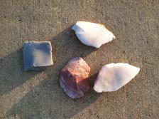 Sample box of very popular and easy to work, heat treated Novaculite, from Arkansas. Quarried, spalled, and heat treated by the Novaculite experts � Bob Thomas and Tom Popow. Colors � creams, pinks, and grays. 4 pieces, ranging in size from approx 6 x 3 to 4 x 4 inches, with avg 5 x 3 inches. $7.50 (3 lbs at $2.50/lb) + $5 shipping (small flat rate box). |