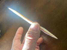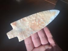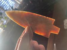 Semi translucent, antler punch over antler percussion. Some crystal on one side of the edge but fairly clean considering. |