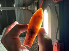 Beautiful colors in this point made of semi translucent Coastal Plains chert from Brier Creek! Serrated sharp, hafting area is ground. Thanks for looking! |
