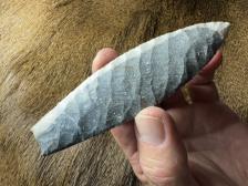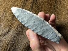 Made from Coastal Plains chert from Brier Creek. Nice oblique flaking pattern and serrated sharp! Hafting area is ground, thanks for looking! |