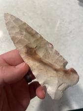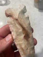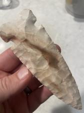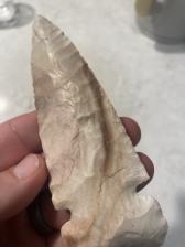 A nicely flaked Hemphill blade with a nice, deep red vein running through the stone.
