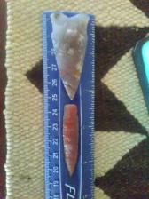 I knapped these points out of petrified wood from the henry mnts Utah.both a rare variety.the Dalton had a few soft spots,but finished nicely. Thanks for your time and have a good day. |