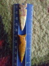 The yellow one is petrified wood from the henry mnt Utah and the trinotch with various colors is rare petrified wood from California. Both awesome gem wood points.thanks for your time and have a good day. |