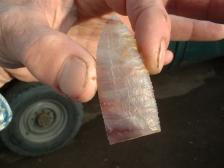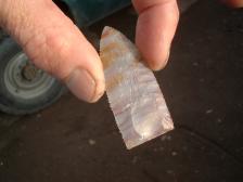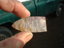 Hi,one more wood pt.,has a small flute on one side.Also has a totally healed fracture>I think you can see it,did not affect knapping it.Beautiful,colorful rare wood.Appx 2 5/16 in. long. Thanx for stopping to see my work ! |