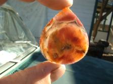 Hi all ! I did not go on my trip,so,back to the factory.....so.......fresh off the line this A.M., is another of some VERY RARE henry mtn. wood,appx 80% of a small round,awesome color & pattern ! Good/average quality work.If it does not sell,I will keep this one ( biggest one I will have from this rock,& almost gone),so it will not go down in price.I did'nt notch it due to some minor internal flaws that would have probably goofed it up,VERY nice,as is,extremely rare ! .Thanx kindly for stopping to see my work ! |