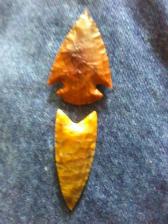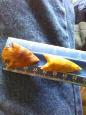 The yellow bifurcated one is henry mnt petrified wood, awesome coler and paterns.the brown corner notch is jasper,thanks for your time and have a good day. |