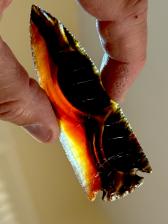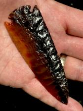 This is a beautiful piece of Piranha Agate with a hidden set of eyes. This point has great mass and extremely glassy material. A hidden treasure. |