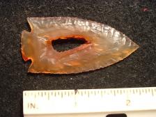 I Knapped this point out of some Brazilian Agate with a natural hole in it. Touchy Knapping but finished nicely.Thanks for looking and make it a good day. |