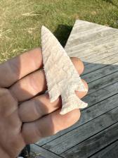This is an exceptional piece for me, I spent way to much tedious time on getting this oblique flake pattern, edge work, and base/notches just how I wanted them. But the time was worth it! Self collected and heat treated keokuk made for this exceptional Hardin. It’s priced higher than normal as I don’t really want to see it go, but could use the extra money currently if it does sell. I won’t be keeping this one up for long before taking the listing down and holding on to it personally. |