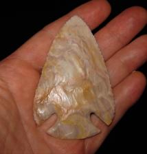 Hopewell style point out of Binthalya opal from Australia. The two sides of this point are distinctly different in appearance. |