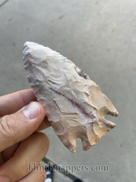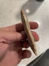 A nicely flaked Hopewell blade. Also has fine edge work.