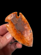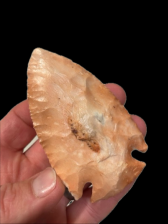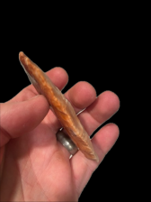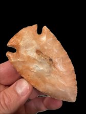 A pink and red Hopewell blade. This has what I believe is a crinoid fossil in the middle of the point. You can see it from both sides!