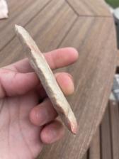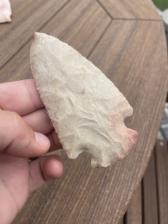 A Hopewell corner notch made from a beautiful red/yellow/cream variety of Burlington. There are also oolites throughout the stone.