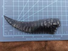 This rainbow obsidian hunter blade made by Mike Brown is approximately 5.5 inches long.
