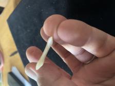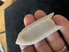 This Folsom is made from Wisconsin Hixton Quartzite, it is one of my best! Double terminated channel flakes, This material can be a real headache. I don’t care if I sell it or not. It is a screamer!! Comes with a small see through case. |