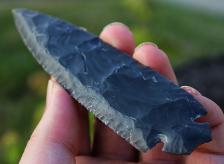 Indented Base Dovetail - This point measures 5 1/4 inches long. This point was modeled after my personal favorite type of dovetail and material. This dove is made of a gorgeous swirled hornstone, and has great edgework and form. This is a killer so don't miss it!!!!