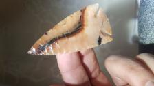 Blackskin agate has got to be one of my favorite lithics to work with.. the colors, lines, and creamy looking surface creates some of the most beautiful arrowheads in my opinion. Thanks for looking. Have a great day                       |