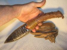 Triple Flow Obsidian Bowie knife with Elk Antler and Walnut End Cap Handle |