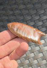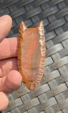 Here is a nice Folsom made from Indian paint jasper from Oregon which displays great colors, super thin base and nice micro flaking. Thanks for viewing |