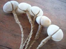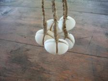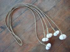 five grooved stones around 1'' in diameter connected to hand twisted hemp.