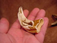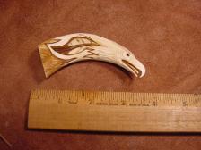 Here is a very beautiful warthog tusk where I carved a 3-d eagle head on the end and several feathers flowing down towards the base. the handle is approx 6" and would make a perfect handle for a stone or steel blade knife, signed bonecarver and numbered.