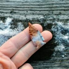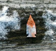 Red,Blue,Purple,Gold and Pink Flintridge. Sweet little point chipped with antler tine. |