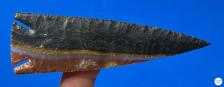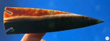 Jafar Jasper is a material with unique color combinations. The primary colors are red, gold, white and black, as you see in this Lost Lake point. But how the colors are manifested is always a little different with every piece. The partly translucent colors in this point are a bonus! |