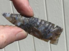 I think is a jasp-agate, but am not sure. I picked up a slab at a rock and gem show and pressure flaked this nice point. |