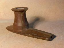 A really nice plain platform pipe made from some Kansas Siltstone I traded for a piece of Hematite. The inclusions are beautiful, but I'm afraid that this pipe probably should never be fired up. I don't really know anything about this stone or how it will react to heat. The inclusions might not expand at the same rate as the main brownish siltstone and could potentially crack the bowl/stack.