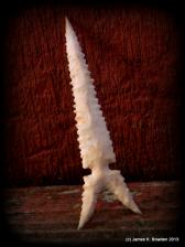 The beautiful pinkish peach cast adds to the attractiveness of this finely serrated, long, delicate point.  It is far better looking than in the photos.