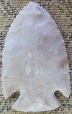 This is a sweet little kirk corner notch made of carter cave flint. This is very thin and very nicely flaked. Another very beleivable point. |
