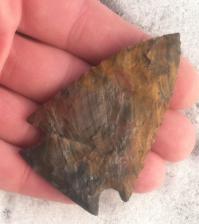 Raw(unheated) banded Nethers Flintridge in Mustard,Greys,Reds and Browns with little quartz veins all throughout the point. Chipped with antler and bone from start to finish. Really colorful and beautiful blade/point.