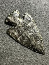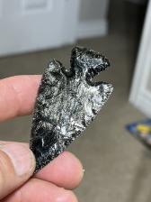 This is a Kirk Corner Notched point made with Mexican Silver Sheen obsidian.