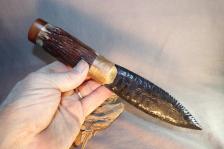 Knapped Dacite Paleo Knife Elk Antler with Walnut End Cap Handle |
