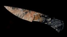 This knife blade is made from Snake River Jasper and the handle is Picasso Marble. This Sweet Hunter comes with a matching Picasso Marble stand (not shown). All work is signed, dated, and comes with a Numbered Certificate of Authenticity. Payment can be made with Pay Pal, Money Order or Personal Check.