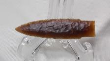 Eden - This translucent beauty measures 2 3/4 inches. This is a fine eden I made at the spring flintridge knap in out of raw knife river. This piece exhibits glorious translucency and a flaking. This is for the plains collector. Would look good in a translucent frame!